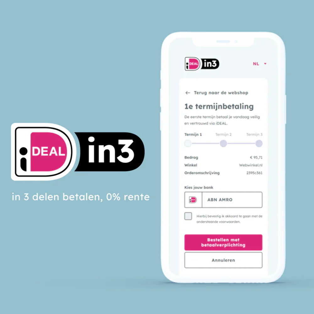 Wil je een uitgave liever spreiden in drie delen? Kies dan in onze shops voor afrekenen met iDEAL in3. Dan betaal je jouw tattoo in 3 termijnen binnen 60 dagen, zónder rente.