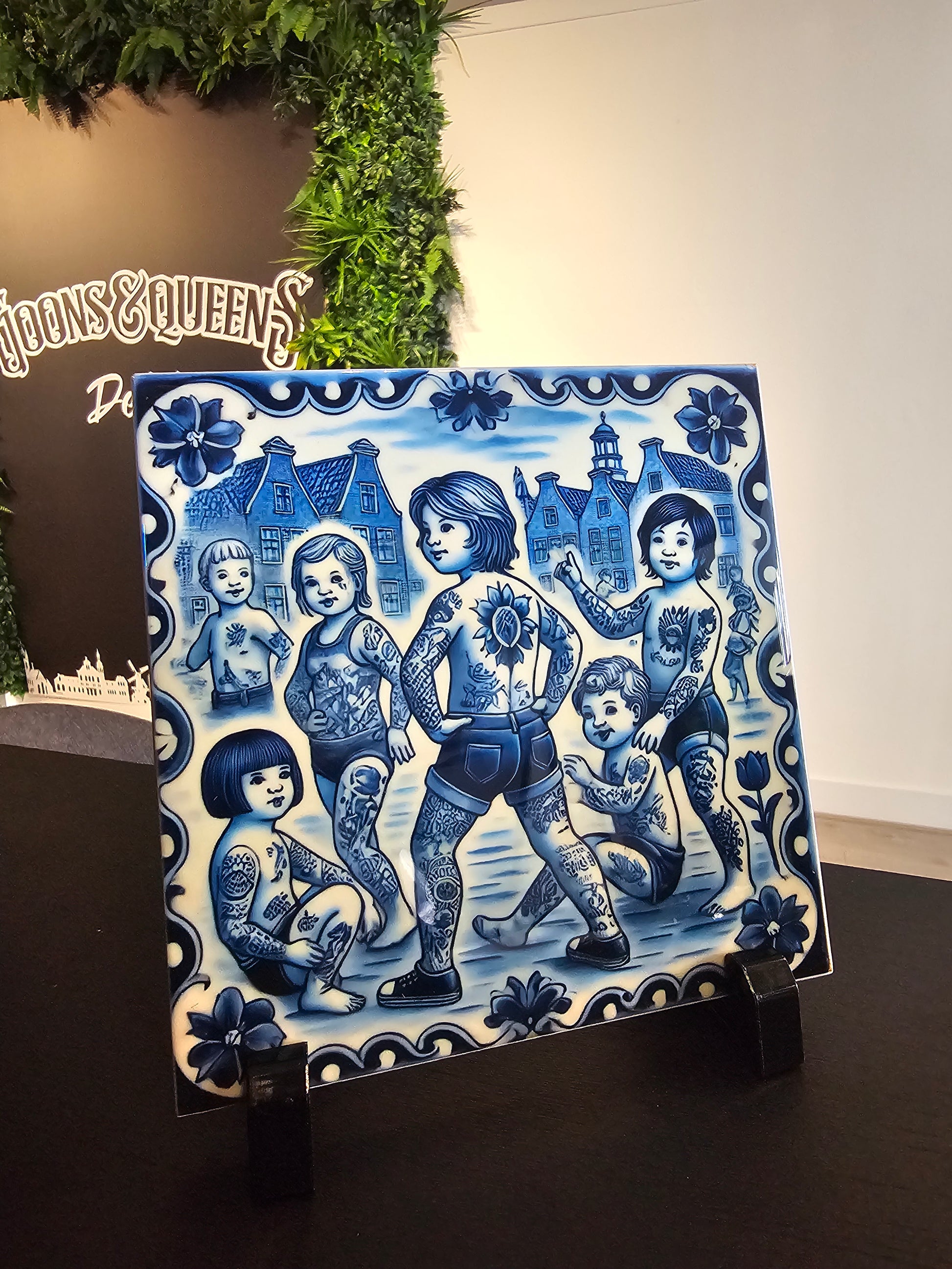 Breng kunst en traditie samen met deze Delftsblauwe tattoo tegel (15x15 cm). Geïnspireerd door klassieke keramiek en gedurfde tattoo designs, is dit een echte eyecatcher voor elke ruimte. Perfect als cadeau of om je eigen interieur een unieke touch te geven!